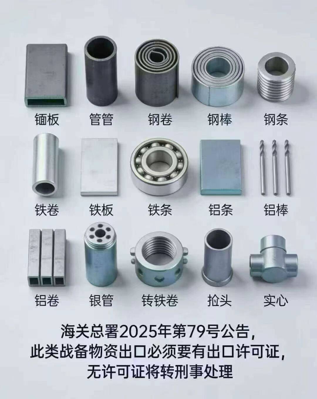 根据海关总署2025年第79号公告,图片中的物品均归类为战备物资,出口必须要有出口许可证,无许可证将转刑事处理。此类物品没有许可一律不接。 请知悉。详细以商务部与海关总署通知为准。